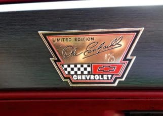 Finished in Black and Silver with a Burgundy interior, these limited edition cars began as fully loaded Lumina Z34s prior to being customized at Dale Earnhardt Chevrolet in Newton, North Carolina.  Modifications included custom graphics and interior and exterior badging and bucket seats embroidered with Dale Earnhardt’s signature.  Individuals who purchased these cars were treated to dinner with Dale Earnhardt and race tickets when they took delivery of their car.
