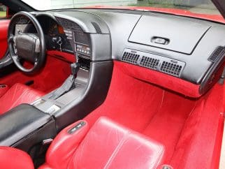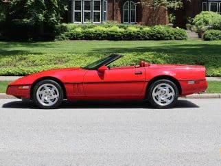 One such “cherished” one is this beautiful 1990 Corvette Convertible.  Finished in Bright Red, this car has been in the meticulous hands of its previous owner—a retired GM engineer—since 2004.  Its finish has a beautiful luster that is further accentuated by its sporty aluminum alloy road wheels and fog lamps.  You’ll also love its sparky White convertible top which will afford you open air motoring on sunny days.